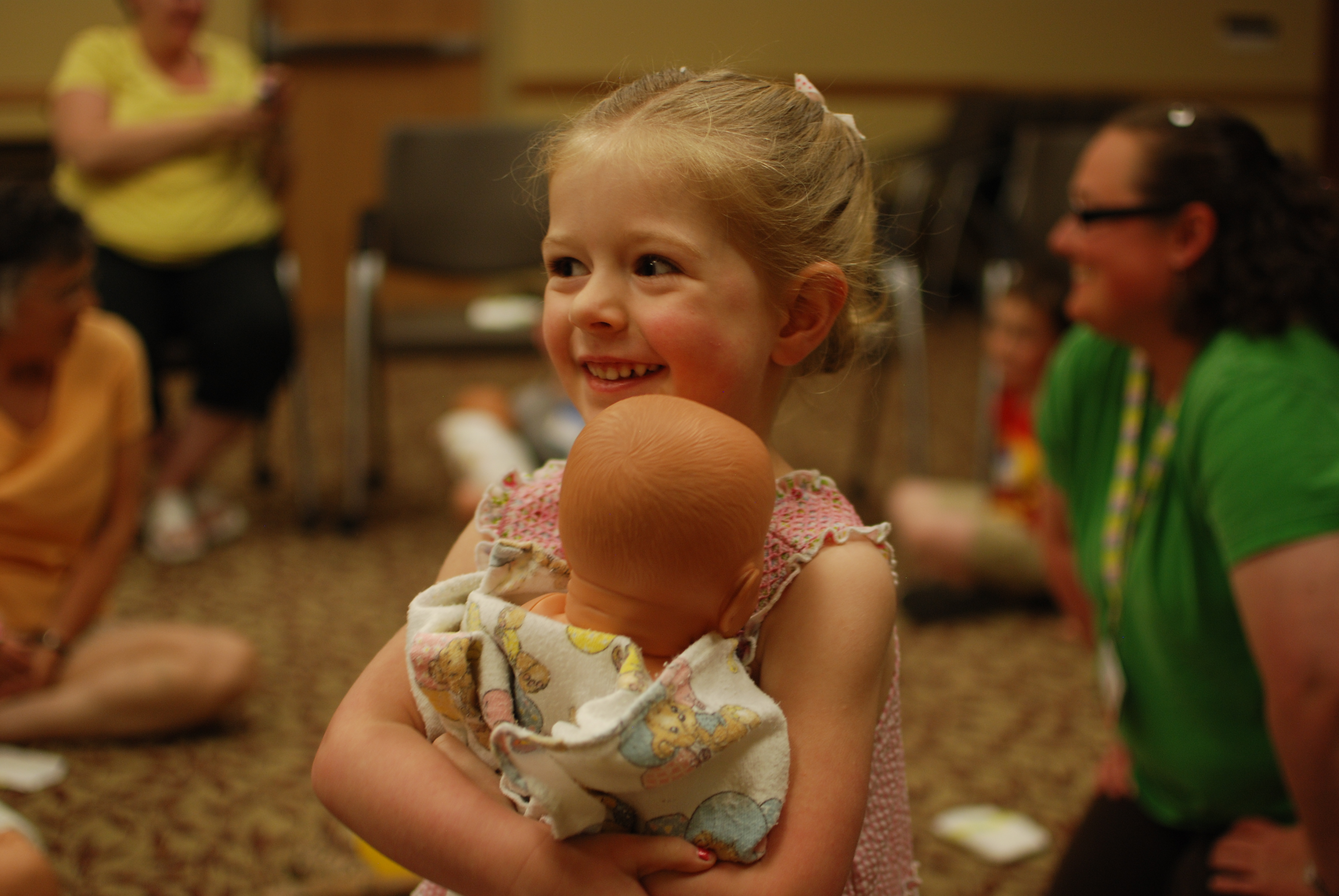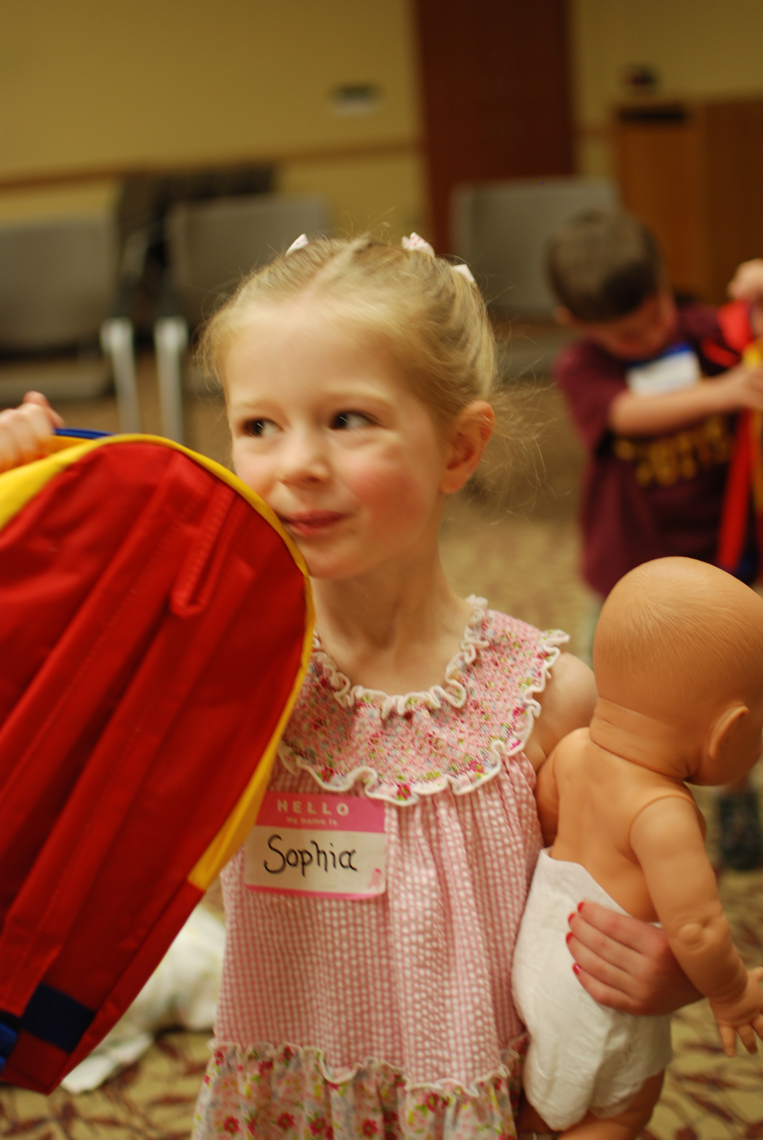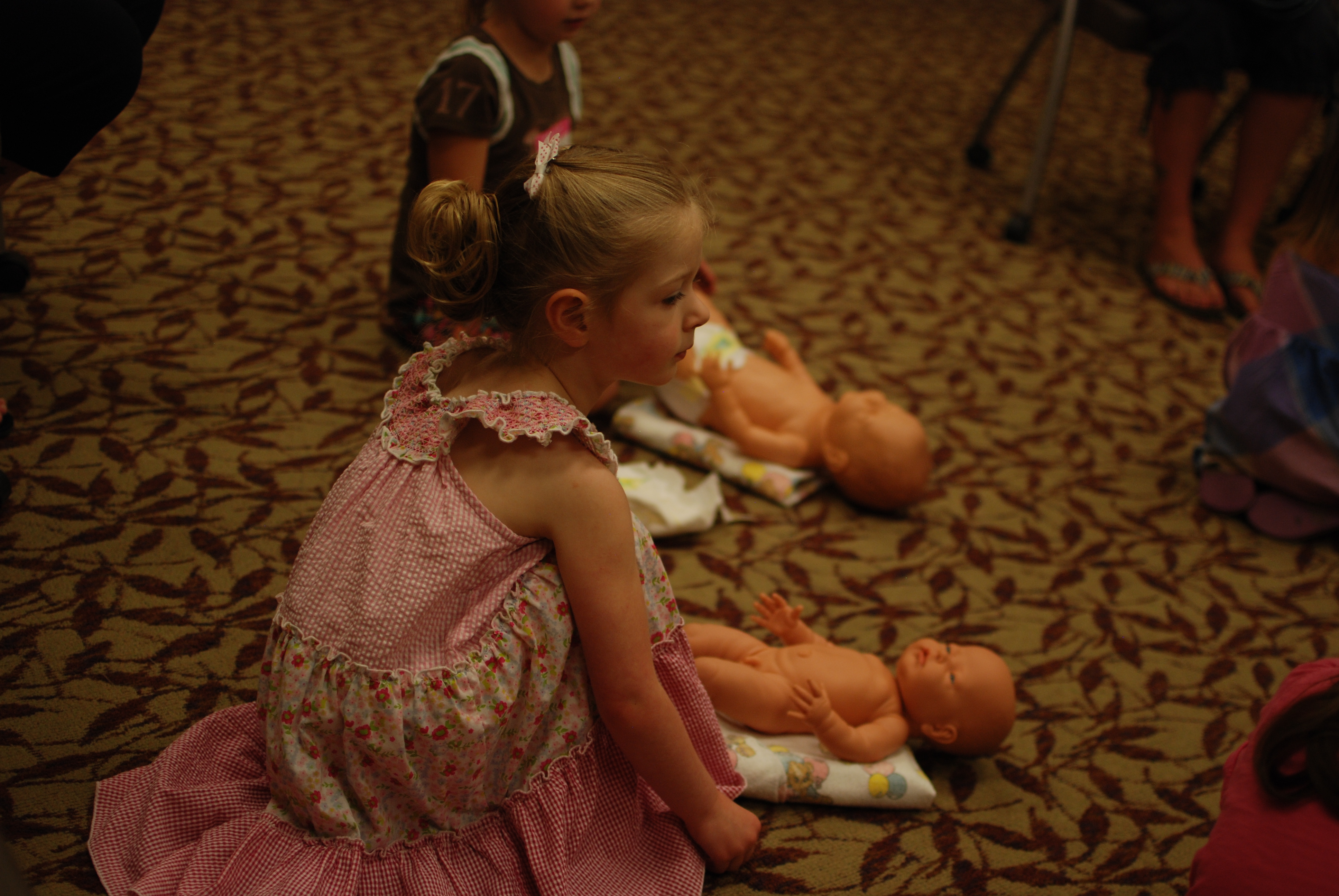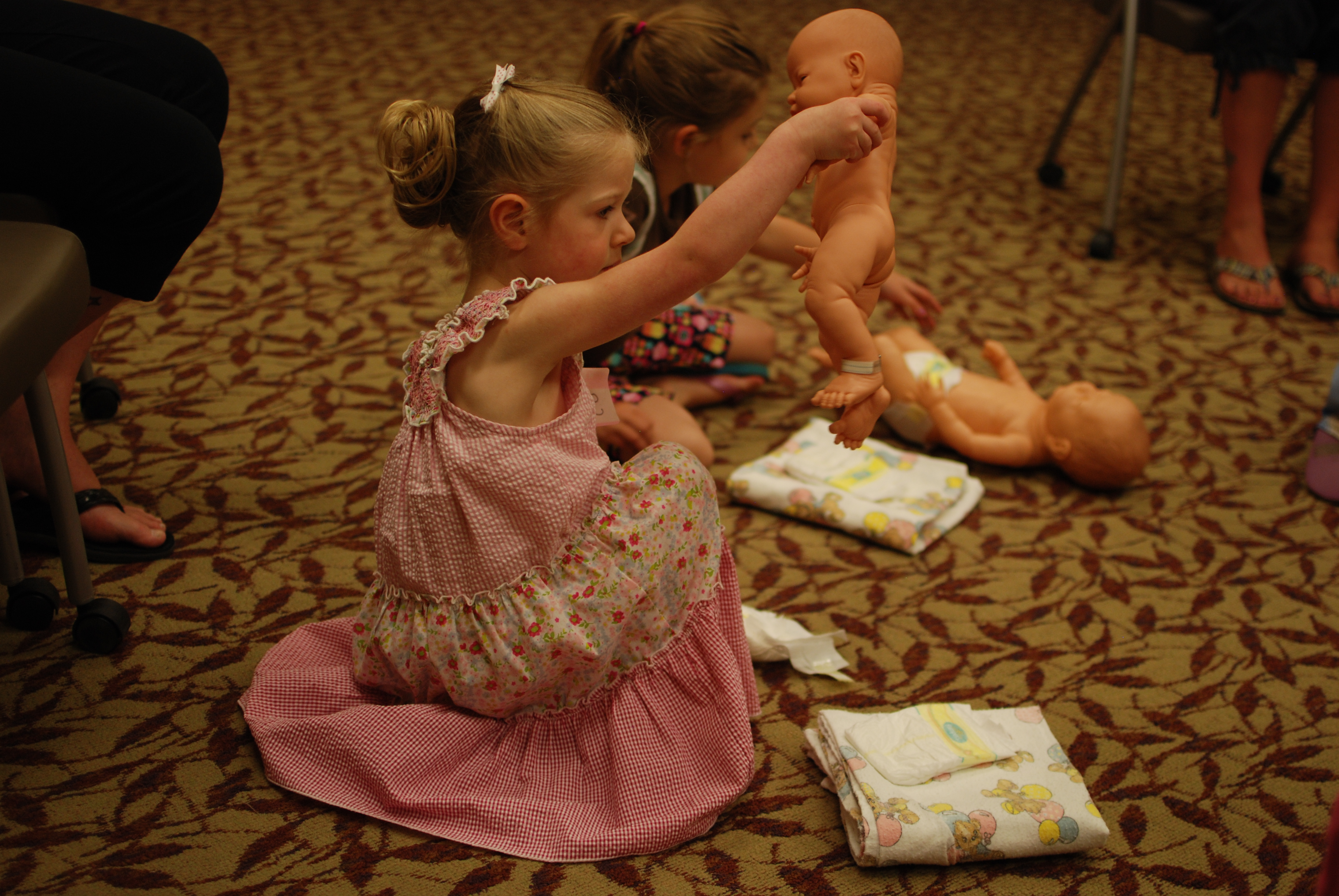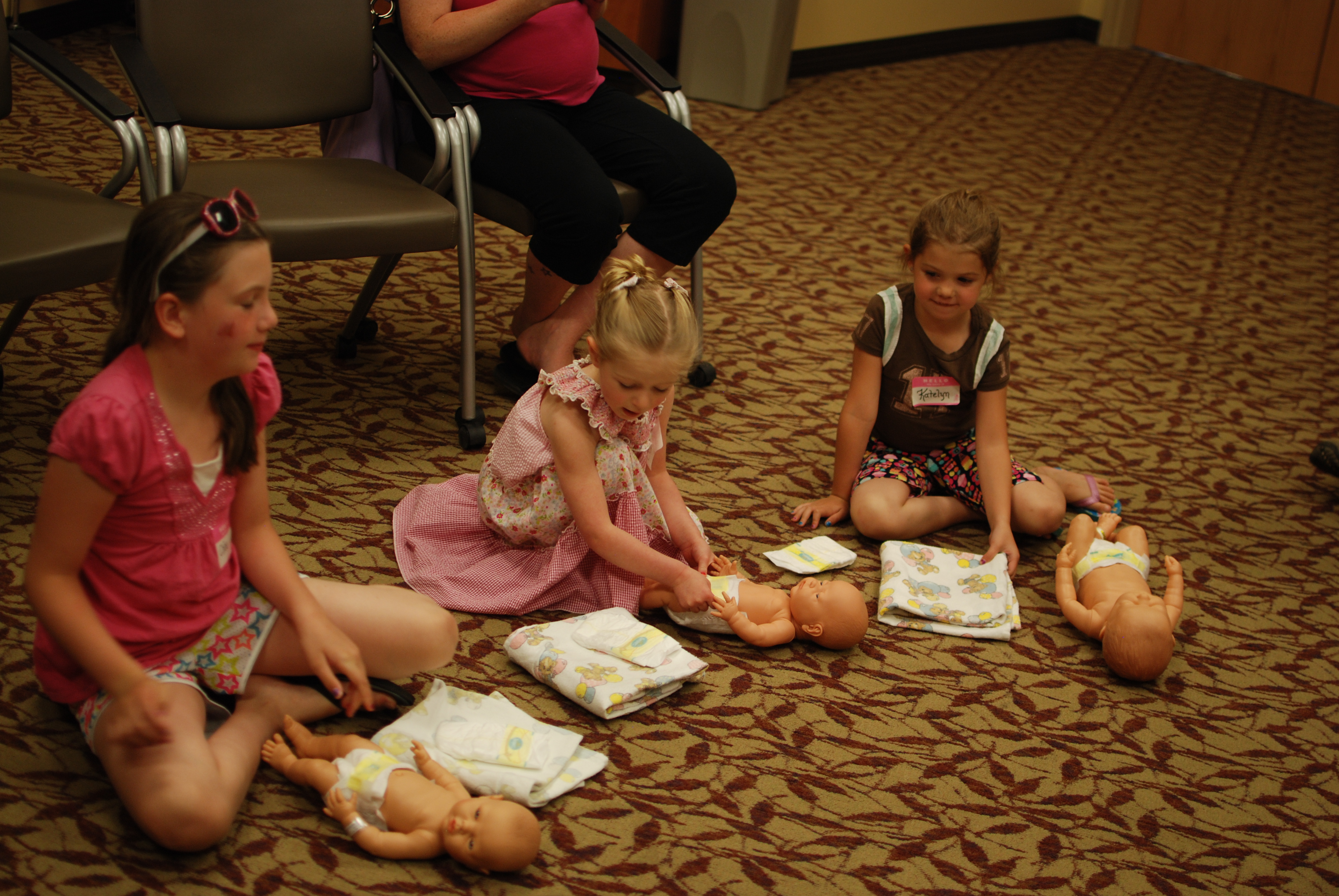 It was only an hour and she would learn how to hold a baby, wrap a baby and change a diaper. She did fantastic and didn't wait for directions, just wrapped that baby up and was done before most of the class of kids.